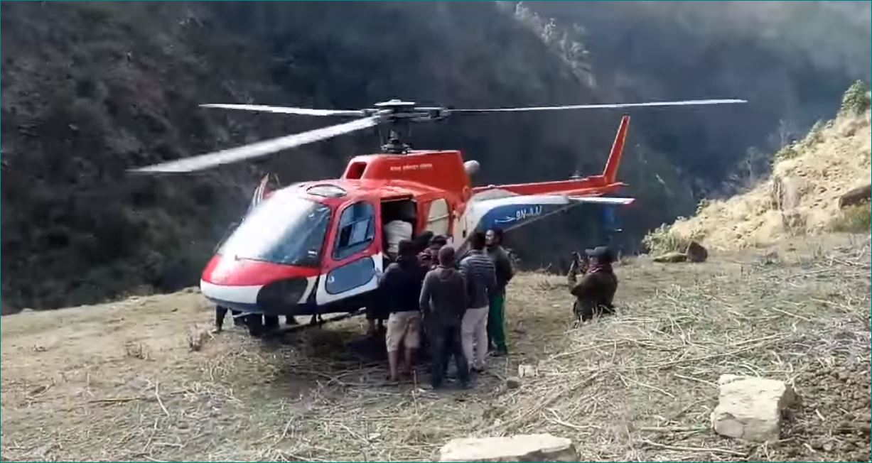 निगालो काट्न जाँदा भिरबाट लडेका गुरूङको हेलिकप्टरबाट उद्धार