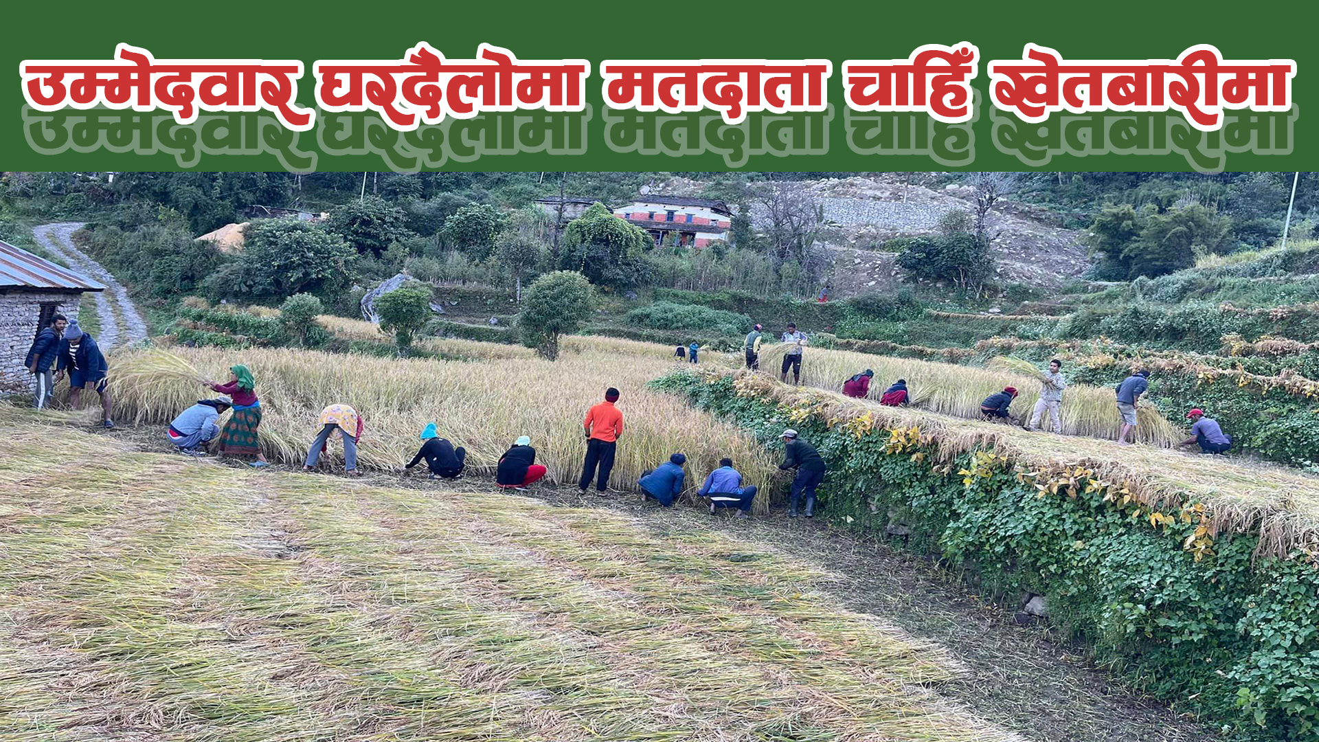 उम्मेदवारको घरदैलोका क्रममा मतदाता घरमा भन्दा ज्यादा खेतबारीमा भेटिन्छन्। कोदो काट्ने र धान थन्क्याउने चटारोले किसानलाई भ्याइनभ्याइ भएको छ। त्यसैले उम्मेदवारचाहिँ खेतमै पुगेर मत मागिरहेका हुन्छन्। ‘नेता आउँछन् भनेर घरमा उनीहरूलाई कुरेर बस्न सकिन्न’, धाइरिङकी नवीना आचार्यले भनिन्, ‘हाम्रो काममा नेताले सघाउने होइनन् क्यारे, हामीलाई खेतीकिसानीमा भ्याइनभ्याइ छ।’