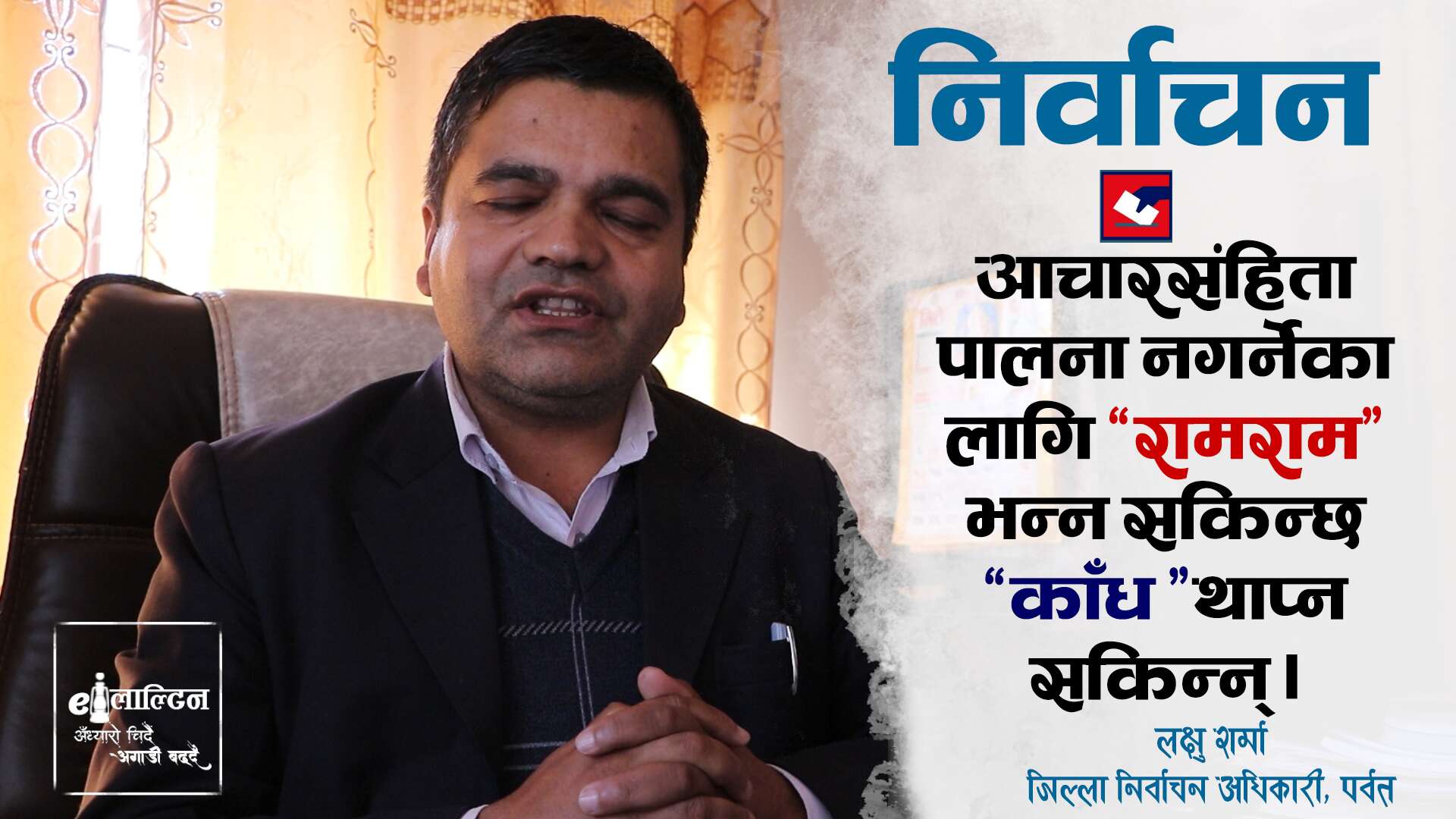 आचारसंहिता पालना नगर्नेका लागि ”रामराम“ भन्न सकिन्छ ”काँध “थाप्न सकिन्न् । जिल्ला निर्वाचन कार्यालय पर्वतका जिल्ला निर्वाचन अधिकारी लक्षु शर्मा ।
