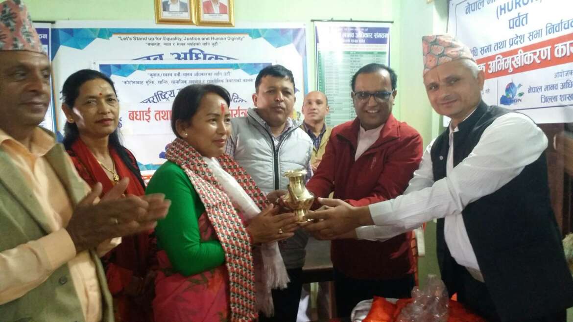पर्वत । नेपाल मानव अधिकार सङ्गठन पर्वतले गण्डकी प्रदेश सभा सदस्य रेखा गुरुङलाई सम्मान गरेको छ ।