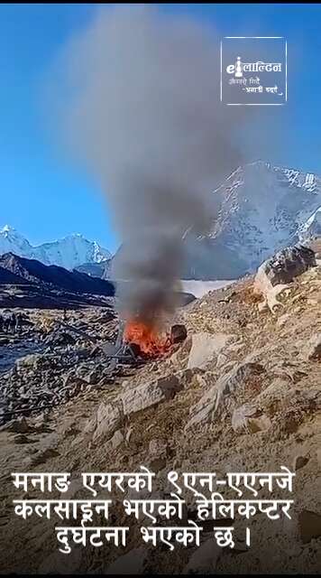 काठमाडौं । मनाङ एयरको हेलिकोप्टर दुर्घटनामा परेको छ । रुम्झाटारबाट लोबुचेका लागि उडेको हेलिकोप्टर बिहान सवा ७ बजे दुर्घटनामा परेको हो । ९एनएएनजे कलसाइन भएको हेलिकोप्टर दुर्घटना भएको हो । सोलुखुम्बुको नाम्चेभन्दा माथि लोबुचेमा हेलिकोप्टर दुर्घटनामा परेको हो ।