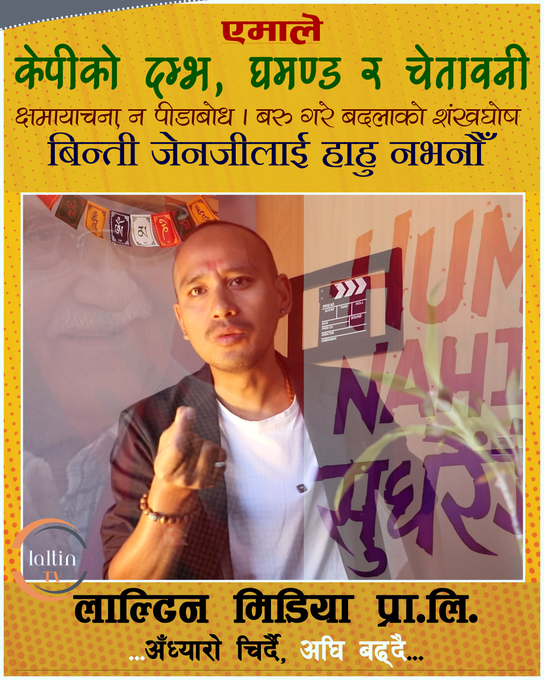 SocialTrendingTVVlogराजनीतिविशेषसमाचार घमण्ड, अहमता र अहंकारमा उभिएर केपी ओलीको गर्जन by ईलालटिन October 10, 2025 written by ईलालटिन October 10, 2025 0 comment Share 0FacebookTwitterWhatsappSkypeViberEmail 273 Share 0 FacebookTwitterWhatsappSkypeViberEmail previous post कार्यकाल सकिएको १९ महिनासम्म राष्ट्रिय सभाका पूर्वअध्यक्षले गाडी फिर्ता नगरेको खबर… next post कारागारबाट निस्केर आफ्नै श्रीमतीको हत्या सम्वन्धित समाचार कांग्रेसका उम्मेदवार जोशीले अङ्कमाल गर्दै बधाई तथा शुभकामना दिए March 7, 2026 पर्वतका विजयी उम्मेदवार सागर भुषालले अर्जुन प्रसाद जोशीलाई के भने ? March 7, 2026 पर्वतमा किरियापुत्रीले गरे मतदान March 5, 2026 निर्वाचनका दिन सवारी साधनको दुरुपयोग गरी मतदाता ओसारर्ने काम भए कारबाही हुन्छ... February 25, 2026 के निर्वाचनमा ५० प्रतिशत भन्दा कम मत खसे फेरि निर्वाचन हुन्छ ? February 25, 2026 पर्वतमा नमुना मतदान कार्यक्रम February 21, 2026